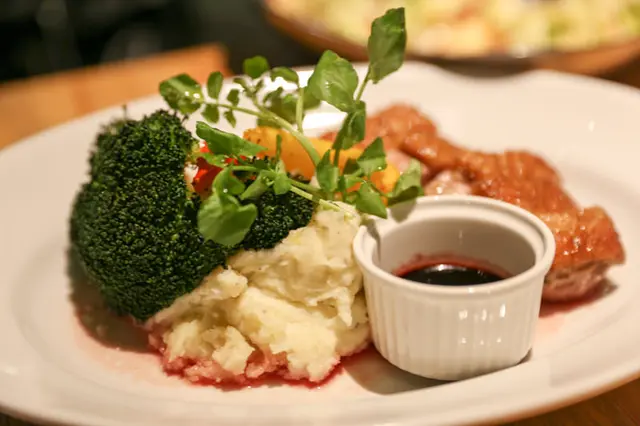 擺盤還有一大球綿密細緻薯泥,服務生有特別建議可以沾取特製石榴醬品嘗,以陳年紅酒醋及波特酒所調製,挺有特色但鴨胸單吃已完美
