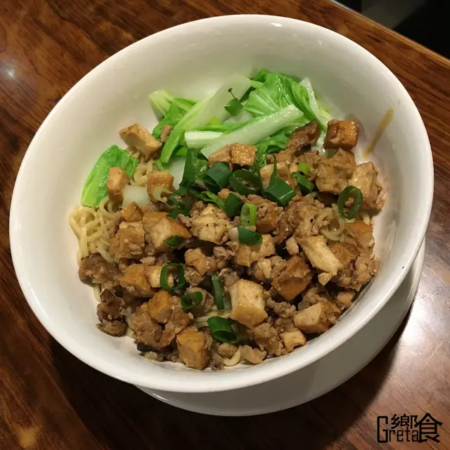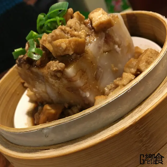 芋頭糕上是豆干和豬肉拌醬,和客式乾拌細麵的醬是一樣的