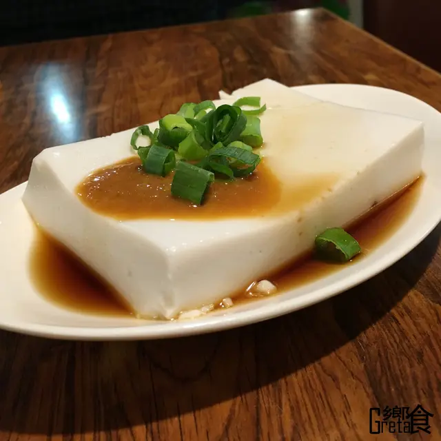 上面淋著花生醬,中間夾著豆花,下面鋪著醬油