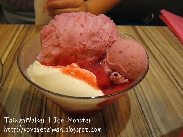 在芒果跟草莓作選擇, 考慮到前兩天才在台南大吃特吃芒果冰, 就點草莓冰好了
