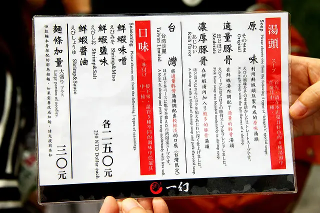 菜單十分簡單,先選基底湯頭,調味,一幻拉麵與其他知名拉麵最大的不同