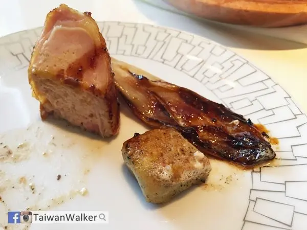 但我最喜歡的是配菜黑松露麵糰子, 還有烤燉過的菊苣, 加上松露跟鮮奶油的醬汁
