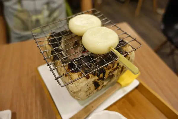 糰子本身好吃,非常扎實Q彈,但有點過大過厚,30秒完全不夠,建議就是一直烤到微焦,表面一定要焦焦酥酥的才會好吃;因為真的太厚啦~火侯不夠力,後來我們都是吃完一口再烤下一口要吃的地方,只能說麻煩也是種樂趣啦XD