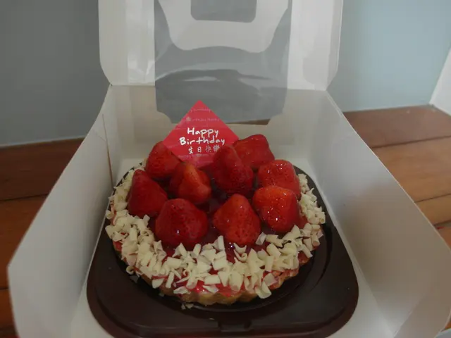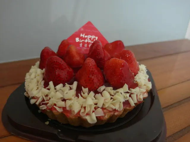 我算了一下大概有10顆草莓,不過照片上一顆被"生日快樂"牌子給擋住了啦