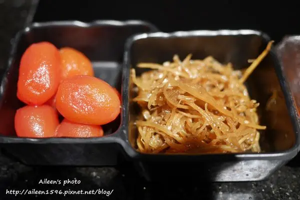 另外還附上了兩道小菜~~梅釀小番茄和牛蒡絲,讓我們在等待火鍋時可以先吃。