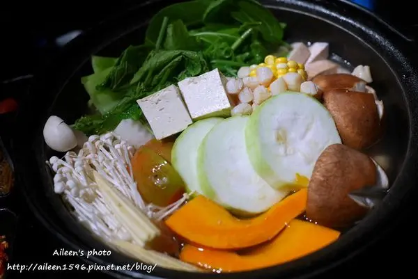 鍋底的部份還蠻特別的,送上來蔬菜已經都先放到鍋子裡了。