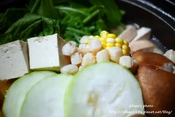 再加上干貝及八種蔬果細火熬製而成的,所以整個湯底喝起來十分的清甜。