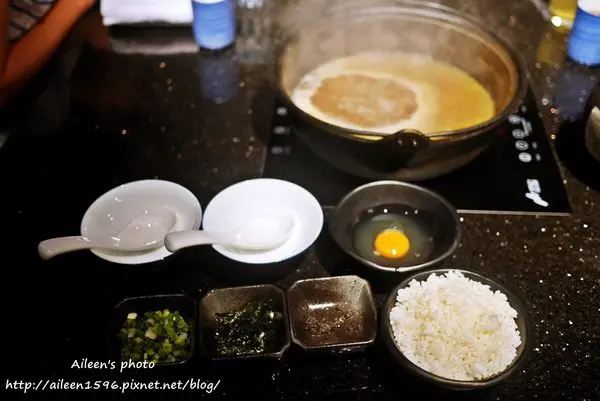 等煮到一定的程度之後,才會放下蛋液、蔥花、海苔。