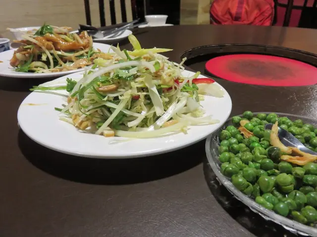 招牌涼拌菜:白菜心切絲和香菜、花生米、豆干