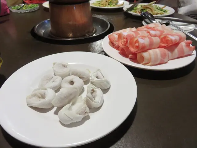 點酸菜鍋附白肉一盤、竹筒花枝一份、魚餃一盤