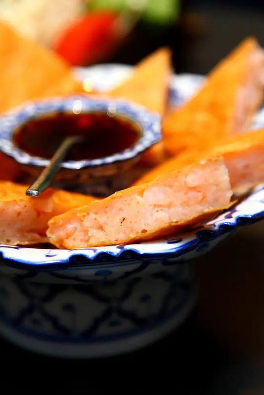 蝦泥與整尾鮮蝦快兩種截然不同的口感咬勁,讓整個蝦餅的口感富有層次上的變化