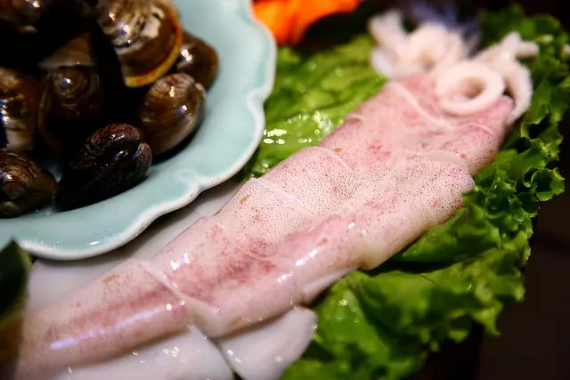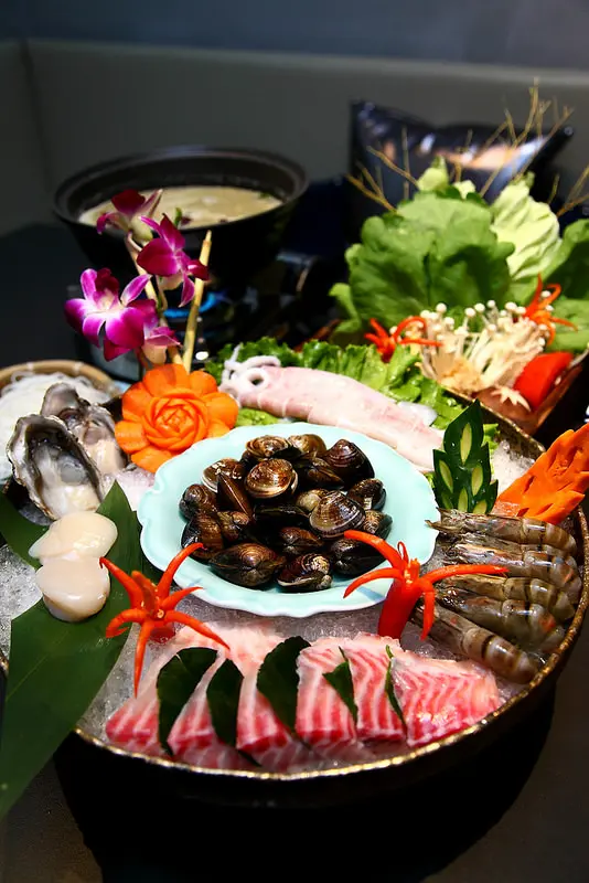 新鮮花枝,生干貝,鯛魚片,草蝦,蛤蠣等等,份量之大,四個人吃也綽綽有餘