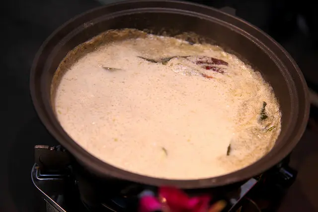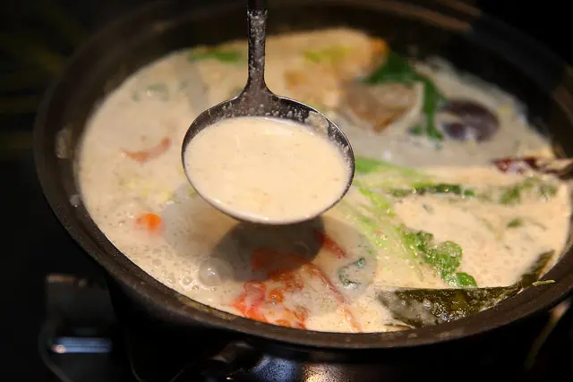 加入大量的椰奶,壓低了綠辣椒的辣度,稍稍帶有濃稠度的湯底