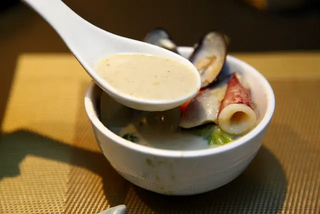 熬煮過大量海鮮的湯底,喝起來鮮美極了,微微的辣味更加讓人食慾大開