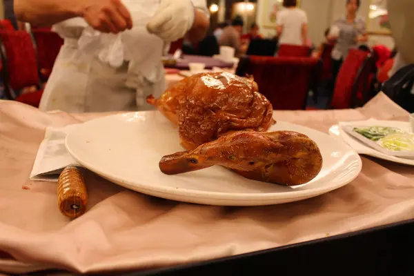 烤鴨整隻送上來 還有師傅在旁邊現切給你看 一整個舊好高級專業的感覺