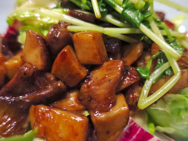 這道菇菇沙拉其實蠻特別的,因為菇菇的部分是炒出來熱熱的