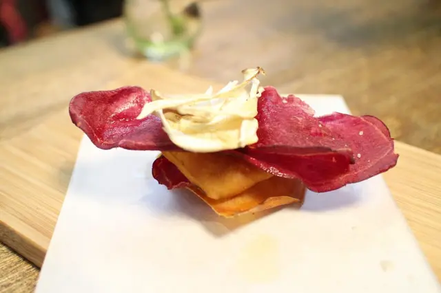 這是招待的薯片及自然風乾的杏鮑菇,炭火味兒相當濃烈,不要久放會稍微膩了口