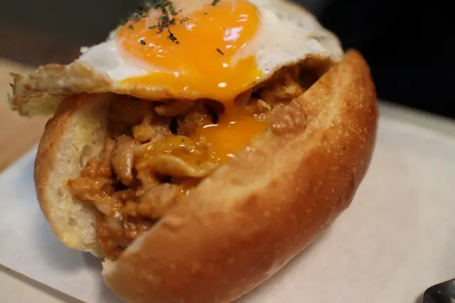 一樣出現垂涎欲滴的半熟太陽蛋,雞肉和明太子醬拌炒微微焦香,同行的朋友說很像吃大亨堡,開朗吃了一口還是那個心得無記憶度的口感