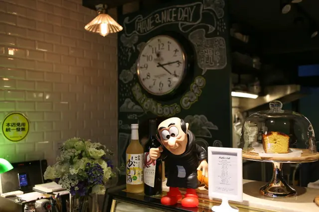 這一帶這一類的咖啡廳都有共同特色,餐點還挺好吃的!這家鄰居咖啡,應該是七八十歲奶奶的家吧?未經洗刷的水泥牆,竹藤編的沙發椅,日式月曆,老舊配件,組成一段令人舒心的舊時光