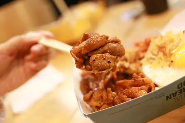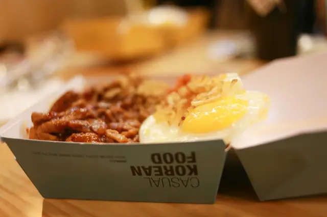 偏硬的米飯吃起來很Q,搭配偏甜的烤肉醬汁非常涮嘴,以主食的烤肉對比待會分享的炸雞,炸雞好吃很多!