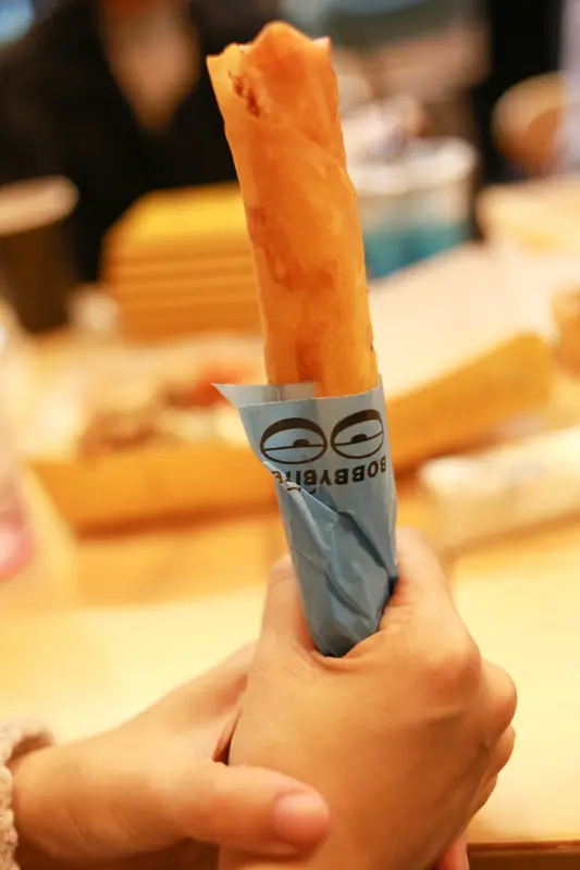選的是地瓜口味,有點像是炸春捲的炸衣,裏頭的地瓜很綿,很好吃啊!