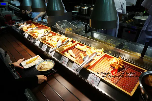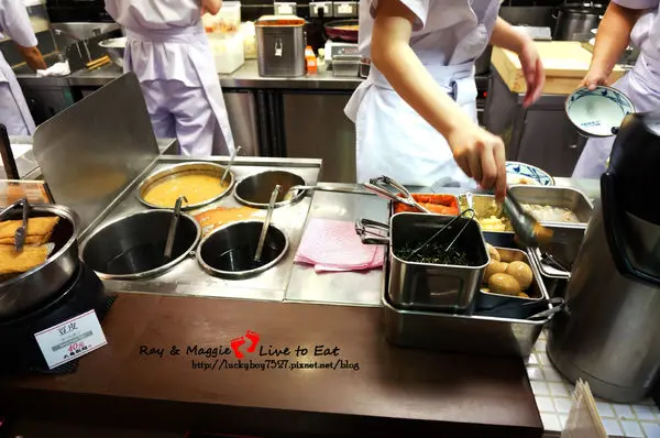 選擇口味 -> 拿托盤跟炸物盤 -> 夾你喜歡的炸物or飯糰 -> 結帳(旁邊可以加配料)