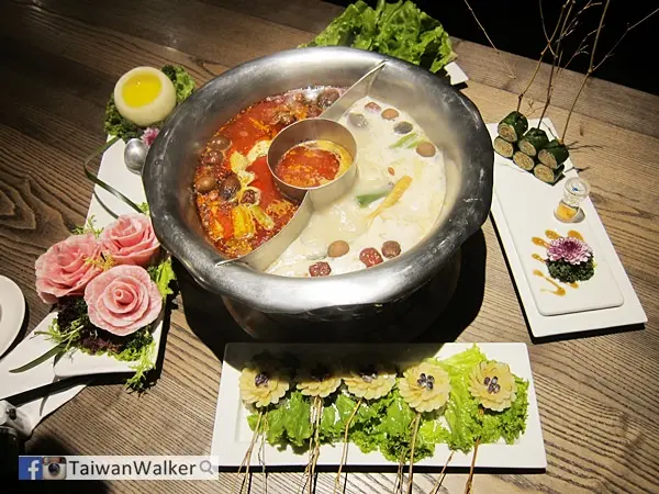 我們點了鴛鴦鍋,紅鍋是麻辣鍋,有分四川麻辣的紅泥小染,也有台灣麻辣的元珠小染