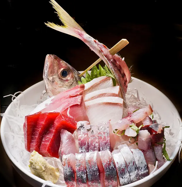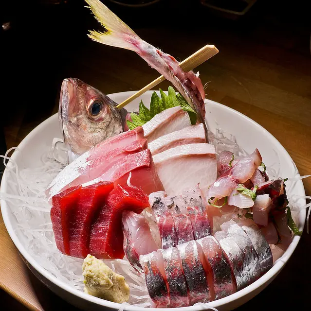 整條的竹莢魚,加上海鱺魚肚、紅魽、鮪魚赤身