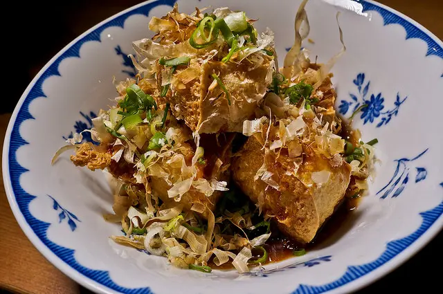 炸的酥脆豆腐加上因為熱氣跳舞的柴魚,好吃......
