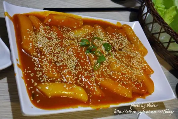 在等待烤肉的時候,服務人員就先送上我們的辣炒年糕,