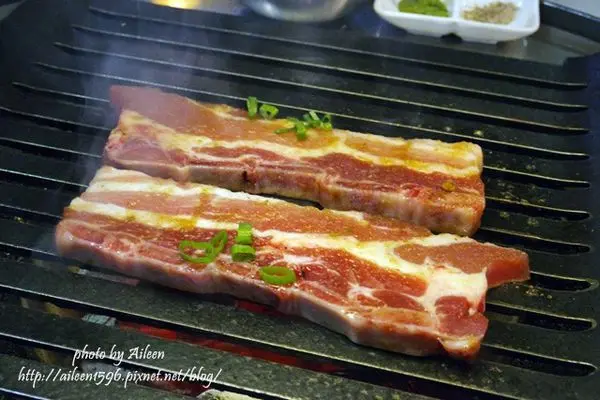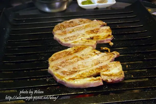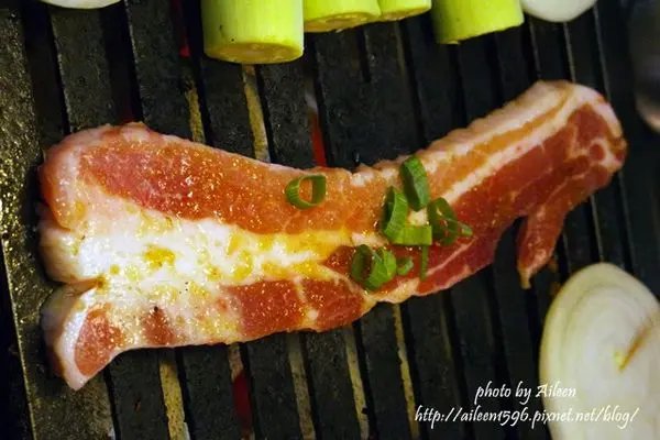 烤的油亮油亮的豬五花,吃起來竟意外的爽口。