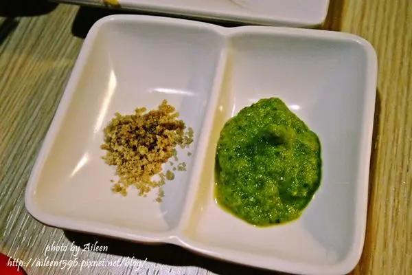 聽店員介紹說,是用大蒜、香菜一起打成的醬汁。