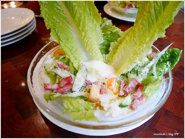 沙拉份量還OK,只是那立著的蘿蔓葉食用較困難XD