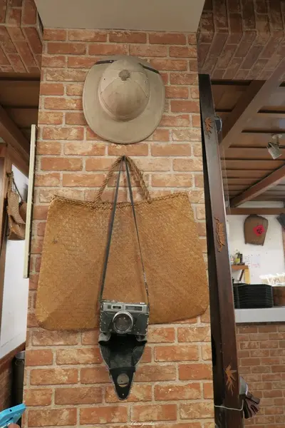 店門口就有一台復古腳踏車和蓑衣等的復古設計