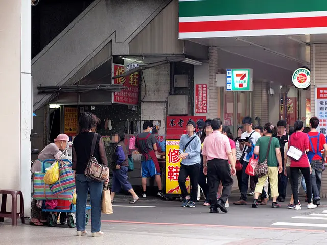 台北市中山區松江路297巷口(小攤一邊是修鞋攤,一邊是7-11)