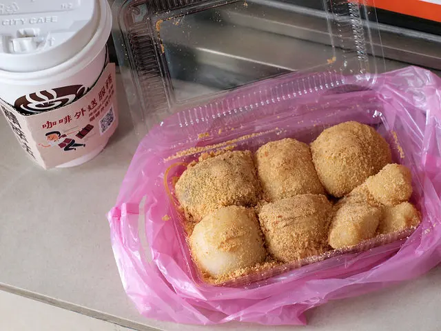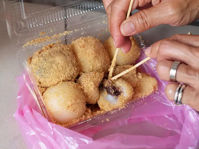 麻糬真的蠻大一顆,分開一半還是很飽嘴的分量。