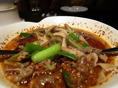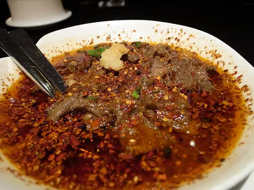 水煮牛肉香氣撲鼻,據說四川名廚來臺第一件事就是煉辣油,這油果然香好質佳