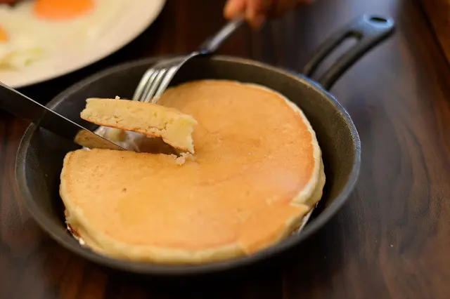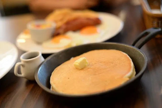 透過上面這一小塊化不掉的奶油就知道這鬆餅不夠熱!