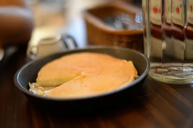 仿鑄鐵小鍋裡的鬆餅下面居然還襯著鋁箔紙-->切著吃著還得擔心別弄破錫箔吃進重金屬呢!