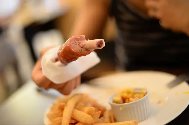 最後一邊啃著這根我一直覺得很"多事"的食材"帶骨香腸"-->