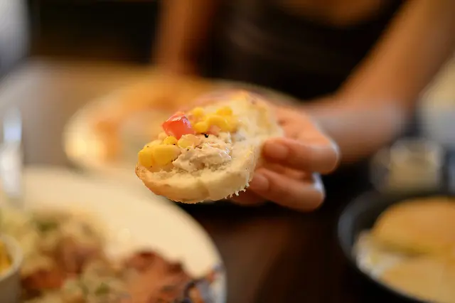 抹上鮪魚醬、撒上黑胡椒再加點玉米粒一口就少掉一半。