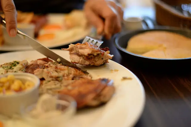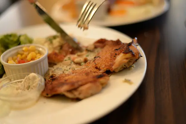 煎出焦香表皮的雞腿排有好吃的模樣,餐刀畫下去有柔嫩好吃的觸感,同時聞著飄上來的香味......