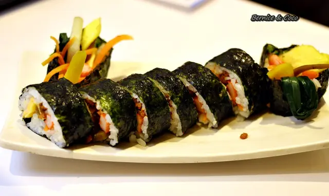 韓式飯捲跟日式壽司不同,使用的是芝麻 鹽 白麻油調味而成