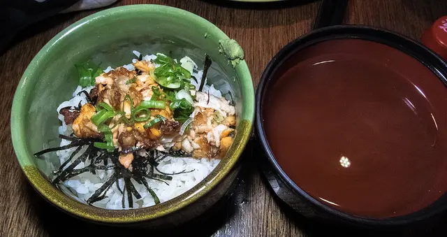 鮭魚烤的夠乾,加上可能有加鹽, 微焦微鹹的口感不錯, 60 塊的飯略小碗一點