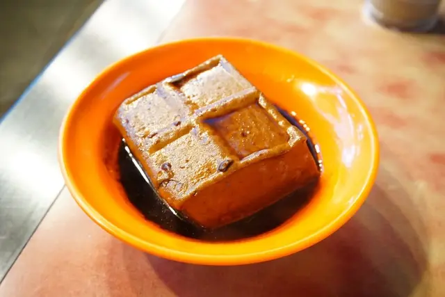 當下拿過來的時候我覺得的豆腐應該超夠味的 一吃 噗~還蠻清爽的ㄟ 有種吃嫩豆腐的感覺XD 我有淺嘗了深黑色的醬汁 味道蠻淡的 但是不知道是不是這樣的原因 有吃到豆腐的豆香
