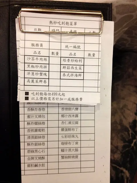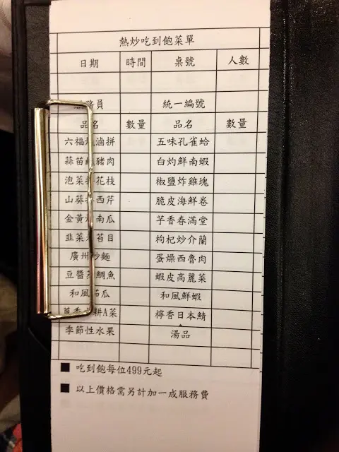 菜單:其實有額外加點的菜色,499NT+10%服務費