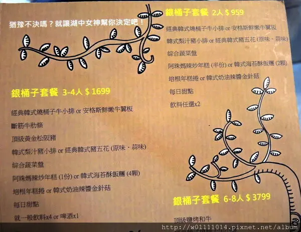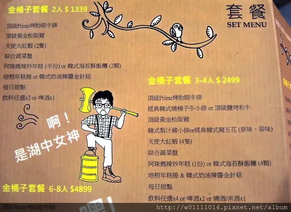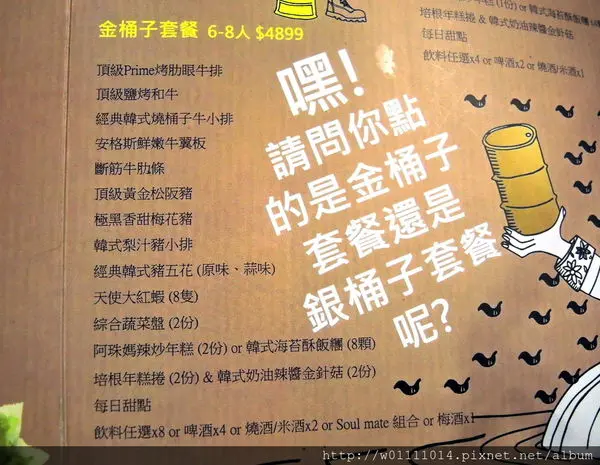 這邊的套餐組合有依人數作區分,另外還有分金桶子套餐跟銀桶子套餐兩款