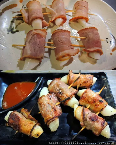 以至於培根有點乾硬><而裡面的年糕卻因為烤不夠久,所以不夠軟Q的口感