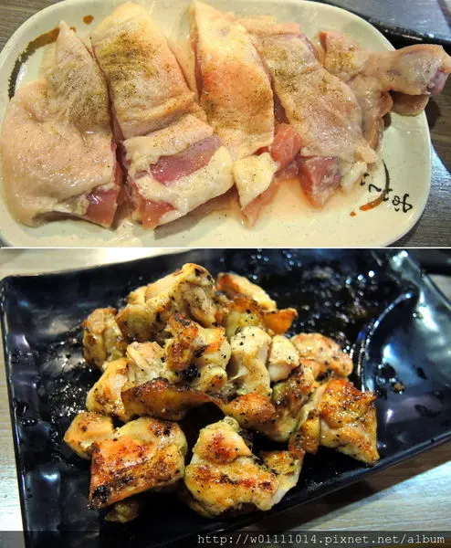 但有沒有注意到雞肉上面有些黑點點,都是烤盤上烤久了累積的焦黑底層