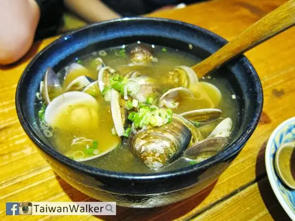 有一位朋友不餓, 就點了他們的蛤蜊湯, 很鮮甜, 有味噌在內但不會過鹹